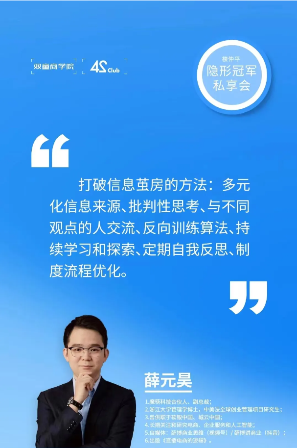 人類的認知系統(tǒng)普遍是存在偏差的,比如人們會傾向于尋找能支持自己觀點的證據(jù),對支持自己觀點的信息更加關注。帶入企業(yè)決策者層面,會給企業(yè)帶來很大的風險。所以保持多元思維,少犯錯也是競爭力!