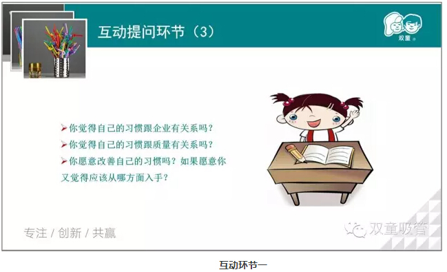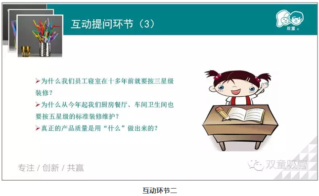 關(guān)于最后一個(gè)問題,都不用吸管妞讓大家舉手,大家就已經(jīng)異口同聲地說出了答案:真正的產(chǎn)品質(zhì)量是用“心”做出來的!看來大家在之前的課程上學(xué)到的知識(shí)都還沒有忘記呢!點(diǎn)個(gè)贊!