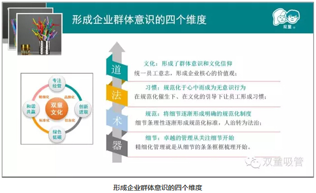 ”雙童“通過價(jià)值觀念、學(xué)習(xí)培訓(xùn)、制度規(guī)范、文化引導(dǎo)形成來影響員工,養(yǎng)成好的行為習(xí)慣!