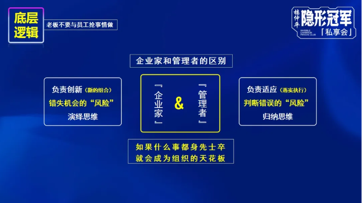 在這套機(jī)制推動(dòng)下,除了我從瑣事中解放出來(lái)了,我們其他的高管,像李二橋、毛斌、陳學(xué)森……也慢慢的從原來(lái)的崗位中逐步解放出來(lái),開(kāi)始去做講師,做別的事情,他們下面的小伙伴也獲得了新的成長(zhǎng)空間,形成了一個(gè)良性循環(huán)!《薪酬績(jī)效訓(xùn)練營(yíng)》師資團(tuán)隊(duì) 依次為:李二橋、毛斌、陳學(xué)森
