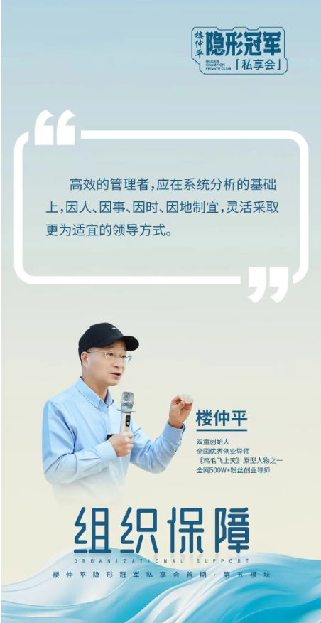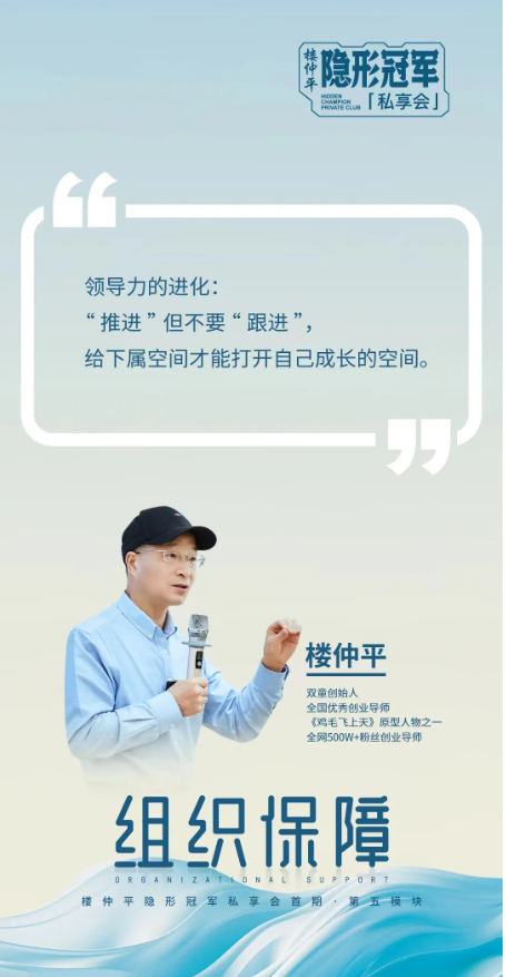 企業(yè)持續(xù)發(fā)展過(guò)程中漫長(zhǎng)的冠軍之路,需要標(biāo)桿企業(yè)和良師益友的指引與陪伴,而找老師,不要找見(jiàn)識(shí)過(guò)的老師,而要找建設(shè)過(guò)的老師!同時(shí)具備實(shí)戰(zhàn)型、認(rèn)知型、成長(zhǎng)型特質(zhì)的老師是不二選擇,而樓仲平老師恰恰具備了上述各項(xiàng)的所有條件。