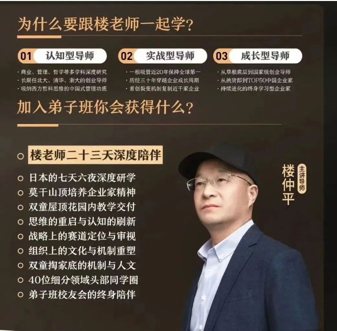如果你是創(chuàng)業(yè)者、學(xué)習(xí)者、思想者,希望在經(jīng)營(yíng)領(lǐng)域有自己的思考和洞察,那么樓仲平【弟子班】就是為你量身定制,今年最后一期招生,一班只招40位同學(xué),名額所剩不多,抓緊機(jī)會(huì)哦!