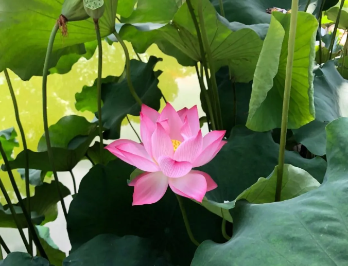荷花綻放映日輝,蓮蓬初結(jié)子滿池