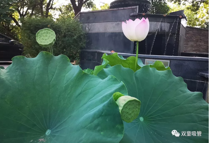 景觀池中還長出了許多蓮蓬呢!
