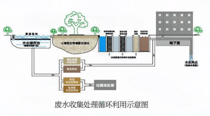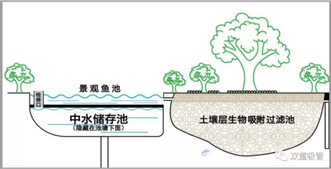中水景觀池的精髓蘊(yùn)含于其命名之中,“中水”實(shí)則源自“雙童”廠區(qū)內(nèi)部經(jīng)過處理的生活廢水。值得注意的是,這些廢水并非直接呈現(xiàn)為我們眼前所見的池水景象,而是巧妙地存儲于景觀池下方的特定中水儲存池中。