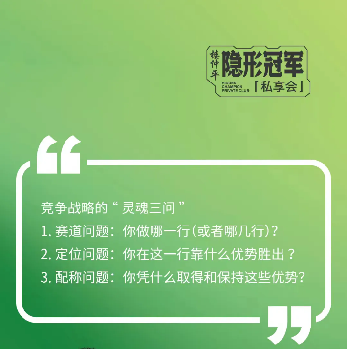 如果你是創(chuàng)業(yè)者、學(xué)習(xí)者、思想者,希望在經(jīng)營(yíng)領(lǐng)域有自己的思考和洞察,那么《隱形冠軍樓仲平思享薈》就是為你量身定制,今年最后一期招生,一班只招40位同學(xué),名額所剩不多,抓緊機(jī)會(huì)哦!