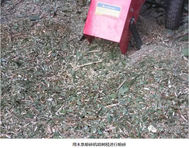 而對園林綠化維護中產(chǎn)生的樹枝枯葉等生物質(zhì)垃圾,我們則專門購置了一臺木條粉碎機,對生物質(zhì)垃圾進行粉碎處理。該物四四方方,遍體通紅,上一口,側一口,塞進去的枝葉全都絞碎成粉末,威力可真是大!