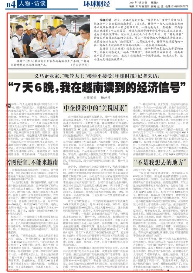 吸管妞導讀提到越南,經(jīng)濟發(fā)展迅速、人口紅利豐富、優(yōu)惠稅收政策,這些優(yōu)勢,幾乎每個創(chuàng)業(yè)者都能脫口而出。但是,人盡皆知的優(yōu)勢還能算優(yōu)勢嗎?越南真的是中國制造業(yè)的轉移樂土嗎?對企業(yè)而言,尤其是制造業(yè),決策成本巨大,盲目樂觀得選擇出海建廠,很有可能對企業(yè)造成不可挽回的傷害。所以如果選擇越南,先對它的優(yōu)勢“祛魅”。近日,《環(huán)時財經(jīng)》整版報道了“雙童”創(chuàng)始人樓仲平在越南7天6晚,從胡志明市—峴港市—河內市,接收到的最真實的越南營商經(jīng)濟信號,可供躍躍欲試的創(chuàng)業(yè)者們做個參考!