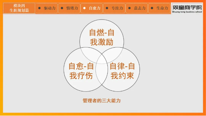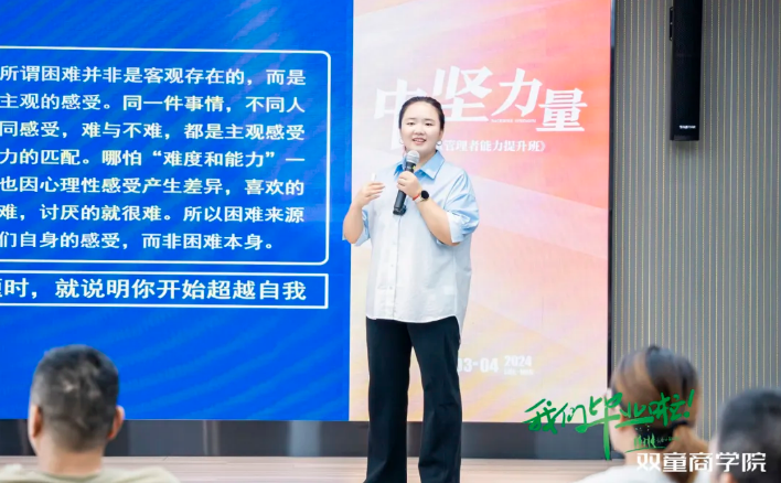 從文宣員到成長(zhǎng)為創(chuàng)業(yè)體總經(jīng)理,再到帶領(lǐng)全體雙童商學(xué)院的小伙伴一步步走得更好,都離不開(kāi)強(qiáng)大的驅(qū)動(dòng)力。同時(shí),面對(duì)成長(zhǎng)中的挫折,她也向大家展示了掌控情緒力、自愈力、專注力、意志力的重要性!