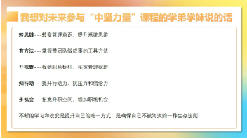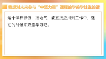 在完成了思維有高度、帶人有溫度、做事有力度三個(gè)模塊課程學(xué)習(xí)后,【中堅(jiān)力量】將最后的落腳點(diǎn)放在了“成長(zhǎng)有速度”!