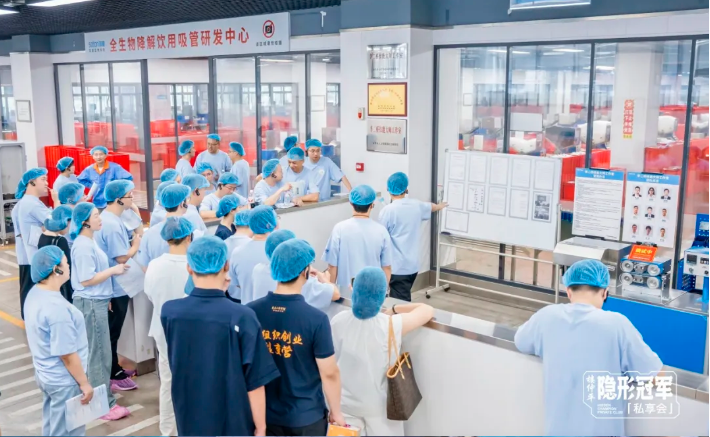 ?學員們近距離觀摩全球獨一無二的雙彎吸管生產(chǎn)線,親眼見證技術創(chuàng)新的力量,學習“雙童”如何通過精準的薪酬激勵策略,持續(xù)激發(fā)技術創(chuàng)新的活力,確保技術領先與產(chǎn)品卓越的雙輪驅(qū)動。