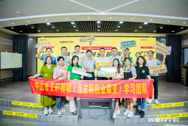 本期裂變營課程,更是迎來了自開課以來單位企業(yè)人數(shù)最多的一支學習團隊——中山市艾軒照明學習團隊,這家300人左右的中小企業(yè),同時派出了14位核心高管共同學習該課程!