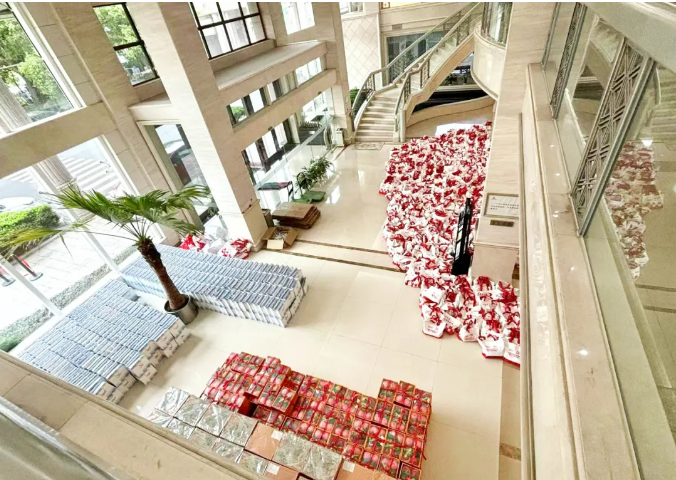 中秋節(jié)雖然還沒有來臨,但后勤部門一早就已經(jīng)開始了熱火朝天的準(zhǔn)備工作,將一盒盒精心準(zhǔn)備的月餅、水果、吸管禮盒、雙童文創(chuàng)裝入禮品袋中。