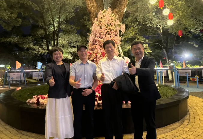 中國(guó)管理案例共享中心主任朱方偉一行和董事長(zhǎng)樓仲平于雙童合影留念