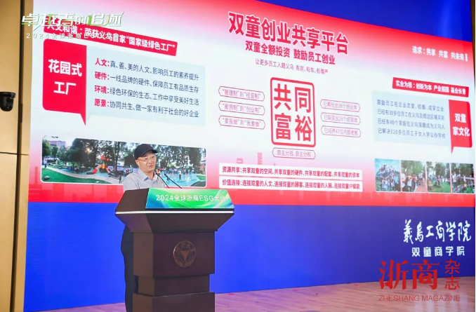 9月27日,“卓越者的追逐——2024全球浙商ESG大會”在杭州隆重舉行。本次大會匯聚了眾多行業(yè)頂尖專家和具有卓越影響力的企業(yè)家代表,共同深入研討ESG領(lǐng)域的前沿動態(tài)、實踐經(jīng)驗以及未來的發(fā)展方向。雙童董事長樓仲平受邀出席,并發(fā)表了以《ESG實踐推進(jìn)雙童可持續(xù)發(fā)展》為主題的演講。