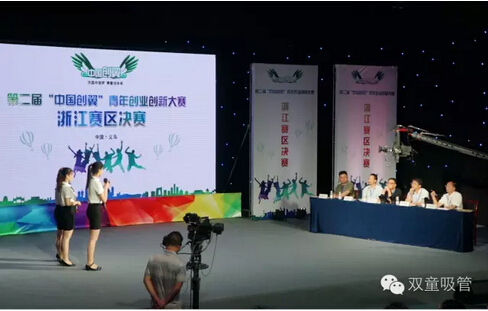 7月28日下午,由浙江省人力資源和社會保障廳主辦的第二屆“中國創(chuàng)翼”青年創(chuàng)業(yè)創(chuàng)新大賽浙江賽區(qū)決賽在義烏市電視臺演播大廳舉行。“雙童”當(dāng)家人樓總作為五位現(xiàn)場專家評審之一,參加了本次大賽的全程錄制??靵砜纯醋蛱斓木驶仡櫚?!