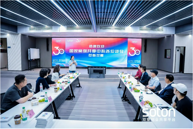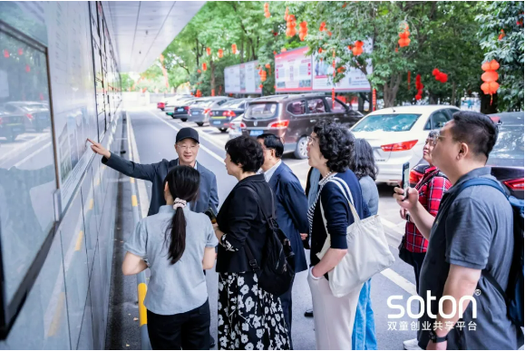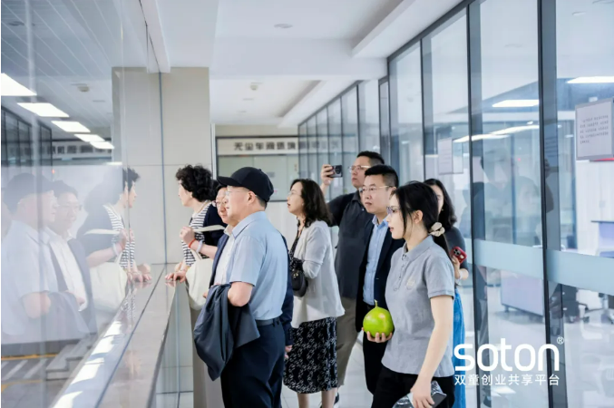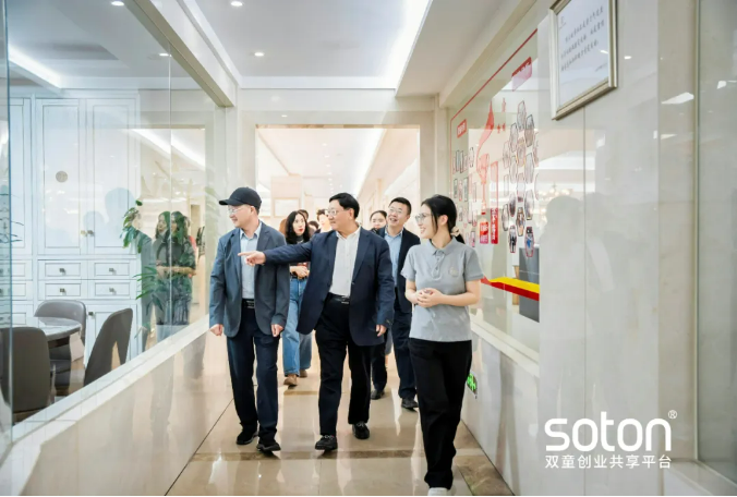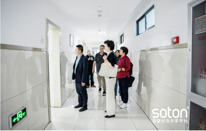 隨后,一行人參觀了“雙童”的行政區(qū)域,觀摩了各創(chuàng)業(yè)體的辦公場(chǎng)所,趙曙明教授和國(guó)家管理案例共享中心各位老師一行與各負(fù)責(zé)人親切地進(jìn)行交流。