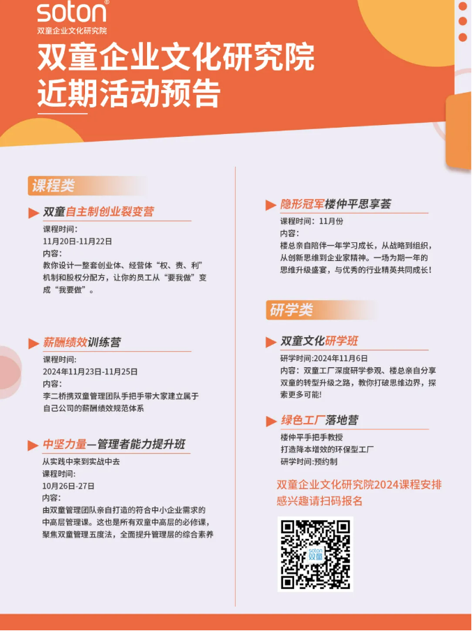 隨著“雙童”案例的廣泛傳播,自主制創(chuàng)業(yè)裂變機(jī)制也逐漸被越來越多研究者調(diào)研。為了造福更廣大的中小企業(yè),雙童商學(xué)院精心打造的自主制裂變營(yíng)課程,目前已經(jīng)發(fā)展得相當(dāng)成熟,具備可復(fù)制性和可實(shí)踐性,完全契合中小微創(chuàng)業(yè)者的需求。