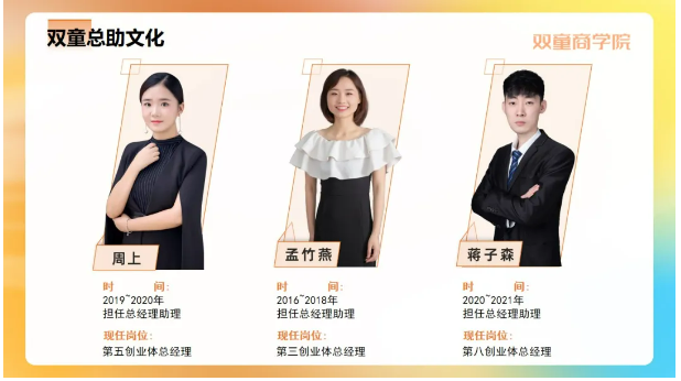 而且,在雙童,周上老師的成功不是特例,類似的成功案例,不勝枚舉:憑借一己之力成為雙童招聘“半壁江山”的蘇紀林、從基層一線員工成為總經(jīng)理的李二橋……