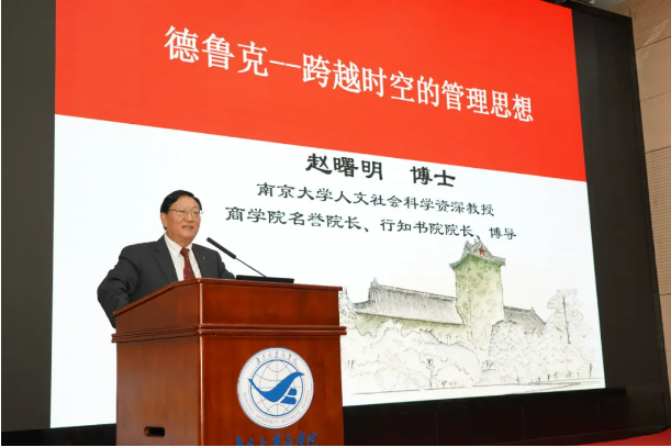 在論壇上,趙曙明教授從自身求學(xué)時與彼得·德魯克教授的交往、合作經(jīng)歷出發(fā),發(fā)表了名為“德魯克——跨越時空的管理思想”的主題演講。