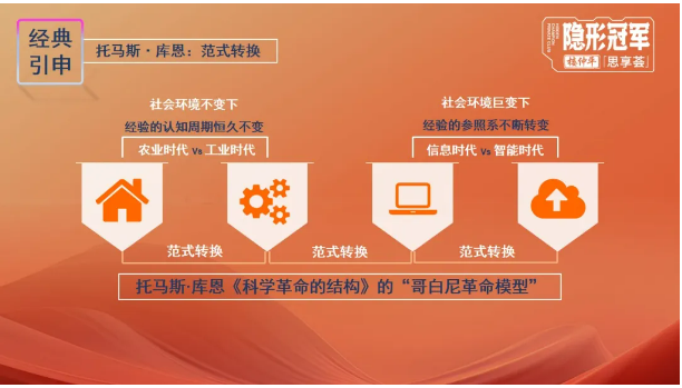 但是經驗是對過往的總結歸納,范式轉換(時代轉變)下社會環(huán)境發(fā)生巨大非連續(xù)性變化時,經驗就很難建立持續(xù)的有效認識。所以農耕文明的知識體系無法解決工業(yè)時代的全新問題,工業(yè)時代的知識無法解決數字時代的全新問題,更不能解決人工智能時代所面對的各種問題。