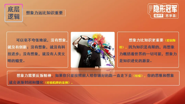 樓老師更是在課上引申了大量事實案例,如從嫦娥奔月的神話到人類登上月球、弗雷德里克·圖德冰塊和冰箱的創(chuàng)業(yè)故事、打字機的產生等,有力地佐證了想象力對人類文明、科學的發(fā)展以及企業(yè)經營的決策認知,都至關重要。