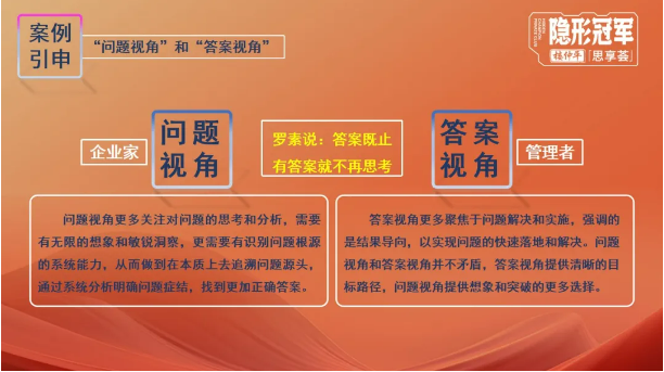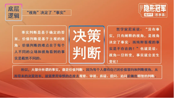 所以,比“事實”更重要的,是對事實的認知和運用抽象邏輯思考的方式。創(chuàng)業(yè)者在經營企業(yè)的過程中,要學會用“問題視角”去思考分析,用審慎的態(tài)度去觀察、審視、質疑、提問、追問后做出明智的判斷。