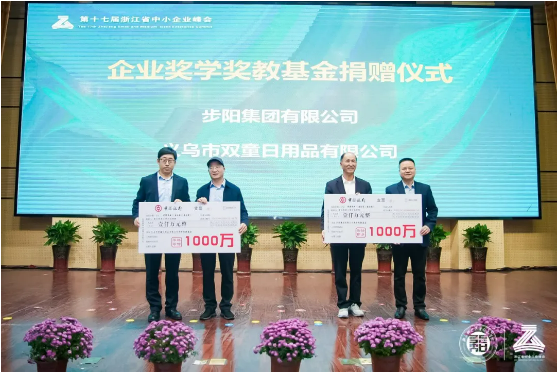 本次峰會(huì)還舉行了企業(yè)獎(jiǎng)學(xué)獎(jiǎng)教基金捐贈(zèng)儀式。其中,義烏市雙童日用品有限公司設(shè)立基金增至1000萬元,旨在為浙江師范大學(xué)行知學(xué)院的教育發(fā)展貢獻(xiàn)一份力量,助力其教育事業(yè)更上一層樓。