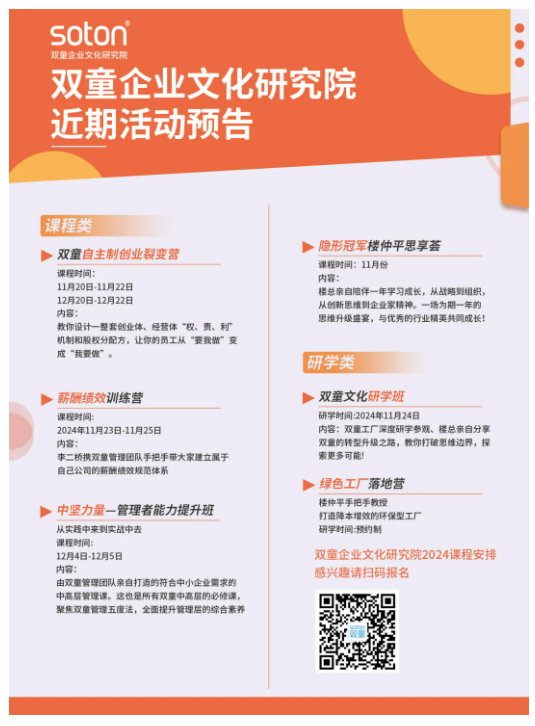 4)領(lǐng)袖智慧模塊:《隱形冠軍樓仲平思享薈》通過(guò)樓仲平老師的全年深度教學(xué)及雙童“中國(guó)式管理體系”輸出,致力于培養(yǎng)更多中國(guó)隱形冠軍企業(yè),實(shí)現(xiàn)企業(yè)家的認(rèn)知升級(jí)、實(shí)戰(zhàn)落地。