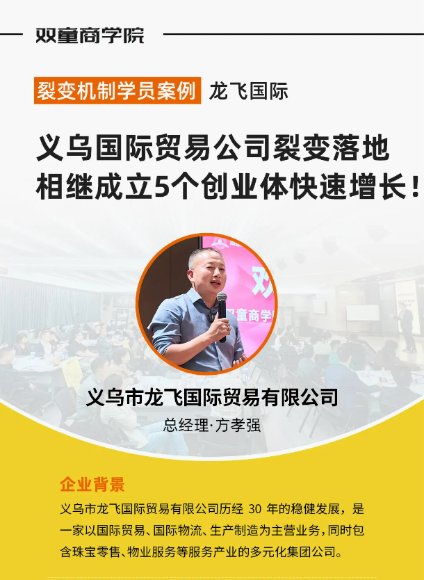 雙童自2018年通過裂變機(jī)制,成功搭建創(chuàng)業(yè)共享平臺(tái)以來,成功孵化了16個(gè)創(chuàng)業(yè)體,26個(gè)經(jīng)營體,外貿(mào)、文創(chuàng)、研學(xué)、文化教育等板塊遍地開花!