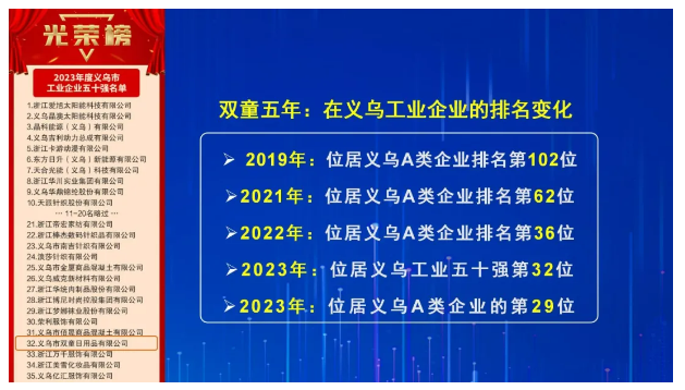 在自主制創(chuàng)業(yè)裂變的加持下,“雙童”在三年疫情期間,也實(shí)現(xiàn)了2.6倍的增長,從2018年到2023年,5年時間,更是再造了3.5個“雙童”,成功入圍“義烏工業(yè)企業(yè)五十強(qiáng)”!