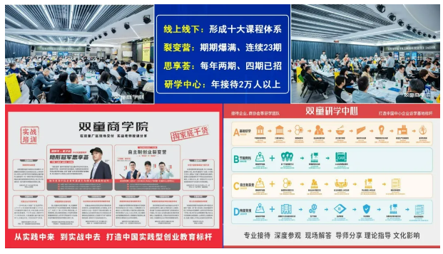 相較于傳統(tǒng)教培行業(yè),雙童商學(xué)院的課程設(shè)計更加注重與實(shí)際一線工作的緊密聯(lián)系。它鼓勵學(xué)員親身體驗(yàn)企業(yè)環(huán)境、深入創(chuàng)業(yè)社群、貼近員工工作日常、并沉浸于實(shí)踐操作的每一個環(huán)節(jié)??梢哉f,雙童商學(xué)院其實(shí)是工廠里的商學(xué)院,它開創(chuàng)了中國真正“實(shí)戰(zhàn)類”教培的新模式。