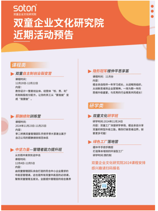 此外,雙童商學(xué)院聘任的12位講師,全部來自“雙童”的核心管理層,他們都是從一線實(shí)戰(zhàn)和實(shí)踐中成長出來的!