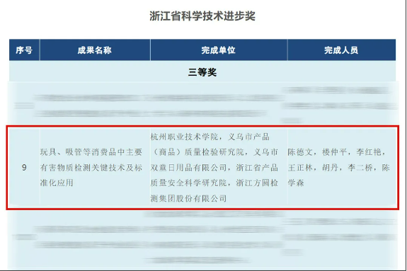 該項(xiàng)目完成了玩具、吸管等日用消費(fèi)品中鉛、鎘、銻等90種有害成分檢測方法與質(zhì)量控制關(guān)鍵技術(shù)創(chuàng)新及其應(yīng)用,創(chuàng)新成果被及時(shí)應(yīng)用于28項(xiàng)玩具、吸管國際標(biāo)準(zhǔn)/國家標(biāo)準(zhǔn)的制定工作,通過及時(shí)掌握吸管行業(yè)的國際話語權(quán),規(guī)范行業(yè)發(fā)展的同時(shí)促進(jìn)產(chǎn)品質(zhì)量提升,有力推動(dòng)了我國吸管行業(yè)“雙碳”戰(zhàn)略的實(shí)施。