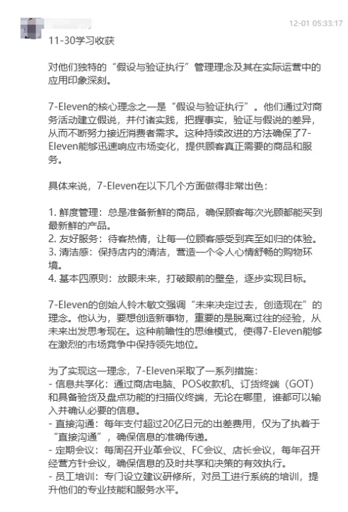 或許當時大家對充滿哲科思維的課程內(nèi)容還有充滿疑惑,但當親眼看到、親身體會到7-11集團的成功時,同學們一定理解了樓老師的用心,學習的意義在此刻形成了完美的閉環(huán)。