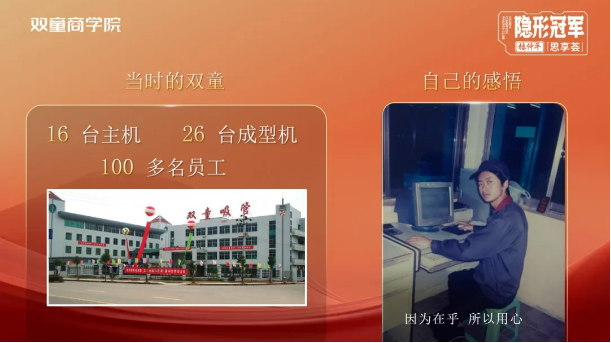 在第三期弟子班第一模塊《認(rèn)知成長(zhǎng)“三部曲”》中(點(diǎn)擊獲取原文),樓老師告訴同學(xué)們,所謂成長(zhǎng)是“認(rèn)知成長(zhǎng)”,只有不斷打破思維的局限,才能實(shí)現(xiàn)認(rèn)知的升級(jí),認(rèn)知的升級(jí)才能帶領(lǐng)企業(yè)的持續(xù)成長(zhǎng)!在雙童有一位充滿傳奇的人,躬耕23年,他一步步完成了“一線操作工—基層管理—中高層管理—平臺(tái)總經(jīng)理”的華麗轉(zhuǎn)身,但仔細(xì)觀察就會(huì)發(fā)現(xiàn),他每一次身份的轉(zhuǎn)變背后都伴隨著一次思維認(rèn)知的提升,他就是受樓老師影響最深的“大師兄”—李二橋。所以,課研組也特別邀請(qǐng)他為大家?guī)?lái)了《如何在就業(yè)中創(chuàng)業(yè)》主題分享,在他解讀自己的成長(zhǎng)歷程中,同學(xué)們可以發(fā)現(xiàn),樓老師在課上教授的知識(shí)在一次次的被驗(yàn)證。接下來(lái),讓我們進(jìn)入“大師兄”李二橋的故事……