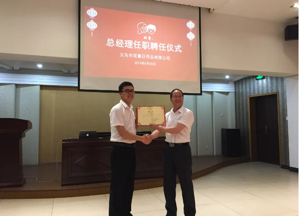 每天生活在老板眼皮底下,這個(gè)過(guò)程自然非常“痛苦”,但對(duì)于個(gè)人成長(zhǎng)來(lái)說(shuō),卻意義重大。因?yàn)樵跇强偟亩δ咳鞠拢麑W(xué)會(huì)了精益求精的態(tài)度,嚴(yán)謹(jǐn)?shù)乃季S,目光長(zhǎng)遠(yuǎn)的規(guī)劃,結(jié)果導(dǎo)向的管理思維,這些都為他后續(xù)的轉(zhuǎn)變做了很好的鋪墊。一路升級(jí)打怪,在2015年,李二橋被正式任命為雙童日用品總經(jīng)理。“視角”決定“事實(shí)”,“視角”決定“思想”。所以成為總經(jīng)理之后,他的第一個(gè)挑戰(zhàn)就是要放棄自己擅長(zhǎng)的工作。2015年5月28日聘任為雙童公司總經(jīng)理