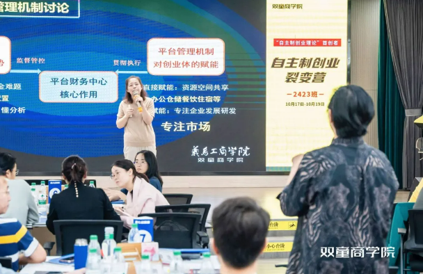 因?yàn)楣镜陌l(fā)展已經(jīng)比較穩(wěn)定,各個(gè)創(chuàng)業(yè)體也如都雨后春筍般發(fā)展起來(lái)了。所以在2022年,李二橋在樓總的推動(dòng)下也開(kāi)始跨界轉(zhuǎn)型,做了講師,后面更是帶動(dòng)雙童其他崗位的管理層一起,把雙童這么多年的管理經(jīng)驗(yàn)進(jìn)行萃取、提煉,通過(guò)雙童商學(xué)院的課堂分享給更多的中小企業(yè),幫助大家少踩坑!