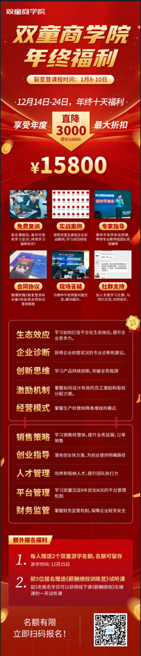 就在2025年1月8-10日,三天的時間,每一個專題都是實用性超強的經(jīng)營方法論和底層邏輯,學透雙童這家行業(yè)隱形冠軍企業(yè)的超強增長機制,定將會是你在2025年快速進化的秘密武器!