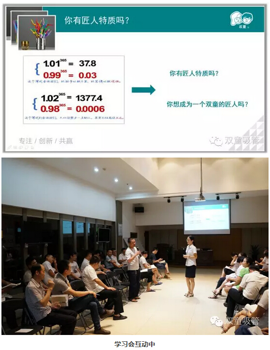 “你有匠人特質(zhì)嗎?”接下來(lái)吸管妹妹和大家做了個(gè)很有意思的互動(dòng),1.01的365倍是37.8,1.02的365倍是1377.4,反之,少了0.01,365天之后,你就比別人少了很多??梢?jiàn),一天兩天的改變或許看不出什么,但是每天都努力一點(diǎn)點(diǎn),每天都進(jìn)步一點(diǎn)點(diǎn),發(fā)生的變化將是巨大的!