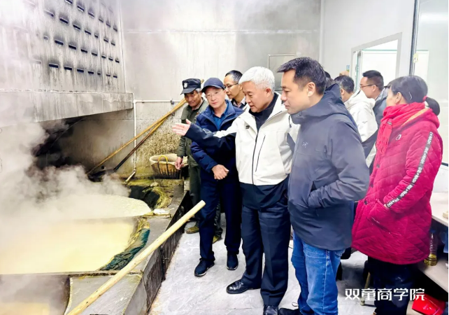 緊接著,創(chuàng)始人樓仲平還陪同張維迎教授和辛莊課堂同學(xué)們,參觀了雙童的員工餐廳和節(jié)能降耗系統(tǒng)。
