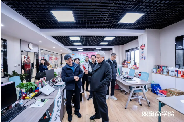 隨后便帶領(lǐng)張維迎教授及同學(xué)們走進(jìn)雙童眾創(chuàng)空間,每走進(jìn)一間辦公室,他就向大家介紹一個(gè)全新的、與吸管截然不同的業(yè)務(wù):第五創(chuàng)業(yè)體的文化傳媒、第六創(chuàng)業(yè)體的可降解膜袋、第八創(chuàng)業(yè)體的文創(chuàng)產(chǎn)品、第十四創(chuàng)業(yè)體的財(cái)務(wù)咨詢等等。