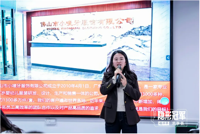 中國制造在廣東,廣東制造看佛山。因此,第二站校友們來到了思享薈三期學(xué)習(xí)委員黃新燕同學(xué)的企業(yè)——佛山市小嘜牙服飾有限公司。這家自2014年創(chuàng)立的企業(yè),專注于加工、制造、銷售:服飾、服裝、鞋、帽、襪、小飾物;貨物進(jìn)出口,技術(shù)進(jìn)出口等業(yè)務(wù)。在距離小嘜牙尚有數(shù)百米之遙的地方,校友們便遠(yuǎn)遠(yuǎn)地望見了黃新燕同學(xué)精心準(zhǔn)備的迎賓牌。而作為此次活動的東道主,小嘜牙團(tuán)隊早已提前在幾百米開外的路邊引導(dǎo)歡迎,滿懷期待地等待著大家的到來。他們的熱情和周到,為這次相聚增添了一份特別的溫馨與隆重。踏入小嘜牙,校友們不僅親眼見證了童裝生產(chǎn)的全鏈條運(yùn)營流程,還深入探討了小嘜牙在數(shù)智化轉(zhuǎn)型道路上的探索和實踐,特別是如何在海量款式面前,運(yùn)用信息化系統(tǒng)實現(xiàn)數(shù)據(jù)的精準(zhǔn)管理。在參觀中,黃新燕同學(xué)告訴大家在公司經(jīng)營遇到困難時,她開始主動出來學(xué)習(xí)。2023年,她關(guān)注了樓老師一整年的視頻,今年1月參加了《自主制創(chuàng)業(yè)裂變營》學(xué)習(xí),8月份開始了《薪酬績效訓(xùn)練營》學(xué)習(xí),這兩個實戰(zhàn)類的課程,幫助她解決了很多的公司管理痛點。