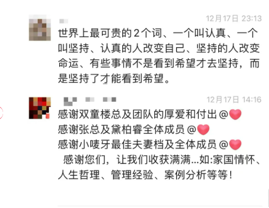 就在今年,他報名參加了雙童的《自主制創(chuàng)業(yè)裂變營》,整個課程無論是理論原理、還是落地實操,都讓他堅信這是一套能夠真正解決當前企業(yè)問題的科學(xué)機制。所以在課程結(jié)束后,創(chuàng)始人謝彥濤當場決定帶領(lǐng)企業(yè)所有核心高管參加下一期的課程學(xué)習(xí),同時還報名了【隱形冠軍樓仲平思享薈】,正式成為樓仲平老師的“弟子”!