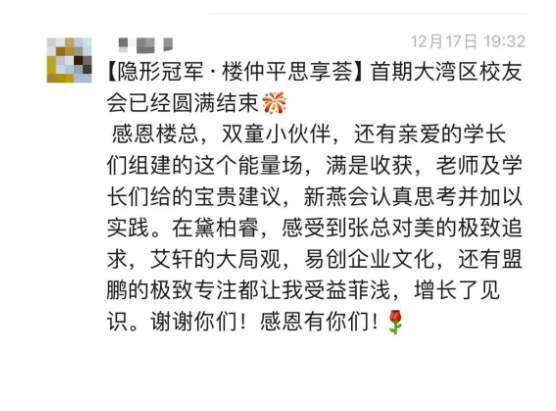 “弟子班”永不畢業(yè),持續(xù)成長!12月15-16日,隱形冠軍樓仲平思享薈舉行首期大灣區(qū)校友會研學(xué)專場。此次活動不僅是第一期至第三期弟子班同學(xué)的首次薈聚,更是一場思維碰撞與智慧交融的盛宴。很多學(xué)員都期盼已久!