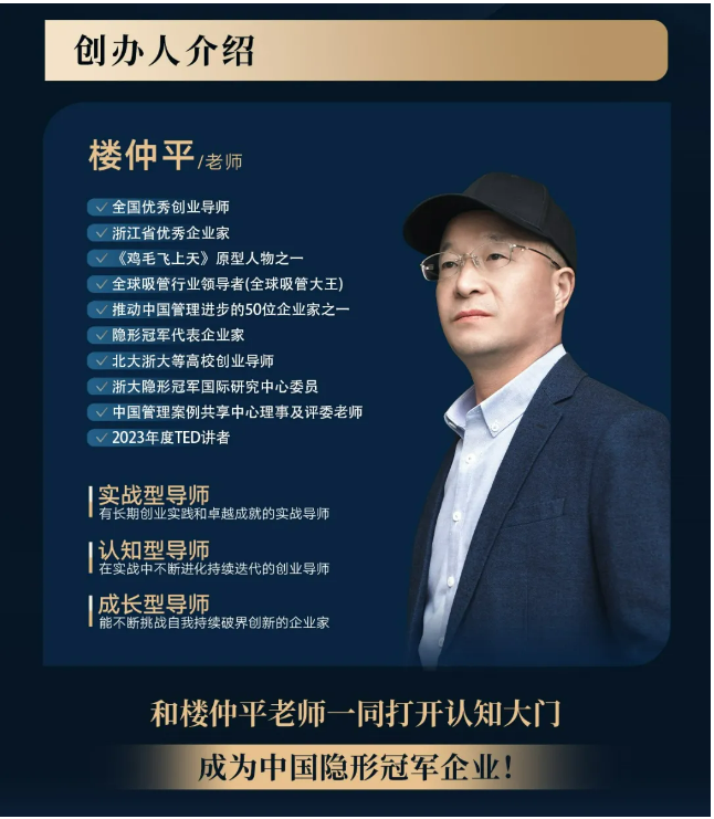 【隱形冠軍樓仲平思享薈】是在原【樓仲平隱形冠軍私享會】上進行的全新升級,旨在為更多中小民營企業(yè)家傳播商業(yè)哲科思維、共享經(jīng)營管理智慧、薈集優(yōu)質(zhì)資源圈層。也是樓總唯一一個全面系統(tǒng)交付46年創(chuàng)業(yè)歷程的經(jīng)驗總結(jié)和思維模型的課程。全年6期課程,樓老師24天深度陪伴,從戰(zhàn)略到組織,從創(chuàng)新思維到企業(yè)家精神,幫助你的企業(yè)全方位升級。