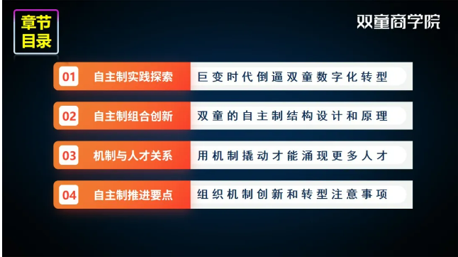 其次,在3位負責課程交付的老師中,樓仲平老師是該機制的首創(chuàng)者,李二橋老師是把自主制創(chuàng)業(yè)裂變機制落地在雙童的實操者,劉育良老師也擁有豐富的實踐經(jīng)驗,所以更能確保“從實踐中來、到實戰(zhàn)中去”,能切實幫助學員輸出一套企業(yè)組織創(chuàng)新方案,激發(fā)個體活力,推動企業(yè)裂變式增長。