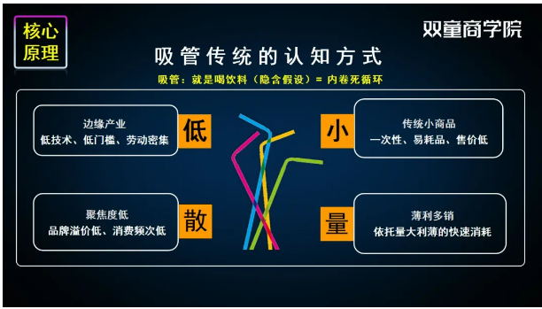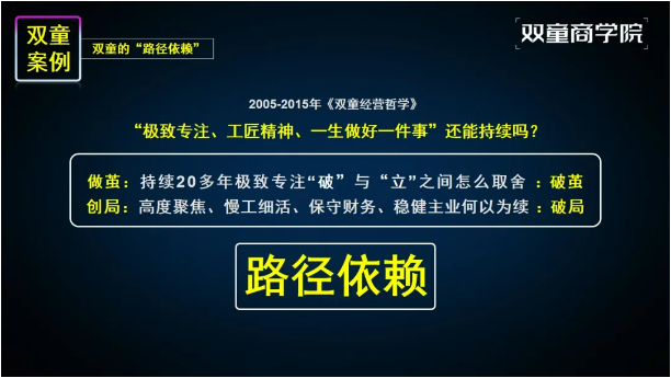 2015年,雙童發(fā)展正如日中天,但創(chuàng)始人樓仲平已經(jīng)隱隱意識(shí)到雙童已經(jīng)來到了新的極限點(diǎn)。樓老師還現(xiàn)場播放了一段大約十年前央視《新聞聯(lián)播》報(bào)道雙童的視頻,向大家展示了雙童在吸管行業(yè)的領(lǐng)先地位。但也就是在這段時(shí)期,雙童遇到了行業(yè)“天花板”,創(chuàng)新紅利已經(jīng)開始衰竭,國際禁塑也讓吸管的應(yīng)用場景在大幅減小,行業(yè)越來越內(nèi)卷!《雙童經(jīng)營哲學(xué)》(2015版)中倡導(dǎo)的“極致專注、工匠精神、一生做好一件事”不可持續(xù)!