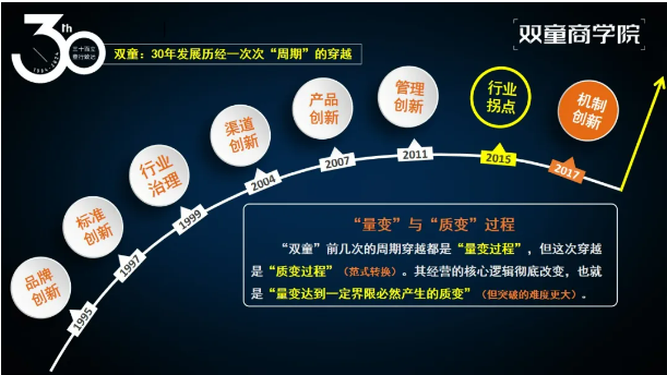 雙童創(chuàng)始人樓仲平時(shí)刻保持著自我進(jìn)化,充滿“成長(zhǎng)活性”,所以雙童企業(yè)能夠在30年間充滿活力活性,不斷穿越一個(gè)個(gè)經(jīng)營(yíng)周期: