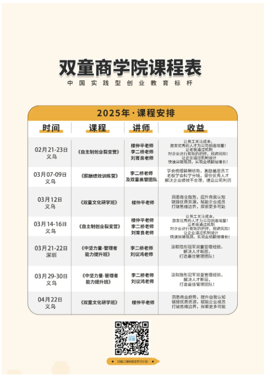 如果你也對“雙童”充滿好奇,渴望深入了解“雙童”的企業(yè)文化,歡迎走進(jìn)2月25日【雙童文化研學(xué)班】,與上百位優(yōu)秀的創(chuàng)業(yè)者一起探索和學(xué)習(xí)!少量名額,歡迎咨詢鎖定!